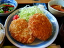写真はここのおすすめである「コロッケセット」。コロッケはホクホクで甘く、十分に満足の行く一品。